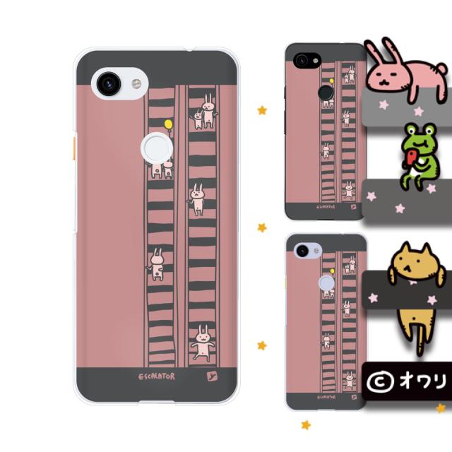 Google Pixel 3a / 3a XL / 3 / 3 XL スマホ ケース カバー オワリ 「エスカレーターとウサギ」 ピンク