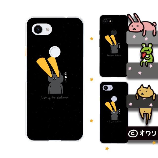 Google Pixel 3a / 3a XL / 3 / 3 XL スマホ ケース カバー オワリ 「闇を照らすネコ」 ブラック