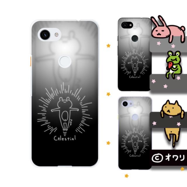 Google Pixel 3a / 3a XL / 3 / 3 XL スマホ ケース カバー オワリ 「神々しいクマ」 ブラック