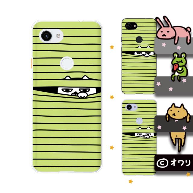 Google Pixel 3a / 3a XL / 3 / 3 XL スマホ ケース カバー オワリ 「ブラインドからのぞくネコ」 グリーン