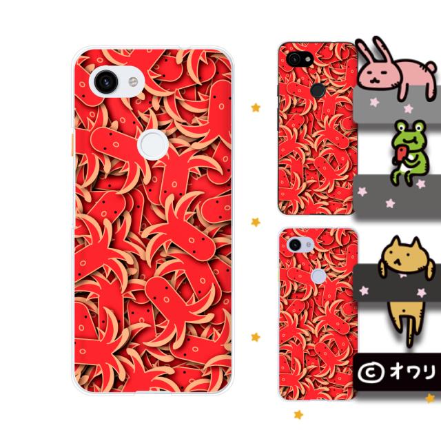 Google Pixel 3a / 3a XL / 3 / 3 XL スマホ ケース カバー オワリ 「ウサギに囲まれる・メガネver.」 ブラック