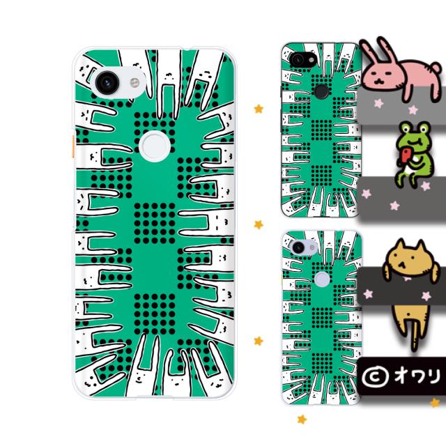 Google Pixel 3a / 3a XL / 3 / 3 XL スマホ ケース カバー オワリ 「ウサギに囲まれる・ノーマルver.」 グリーン