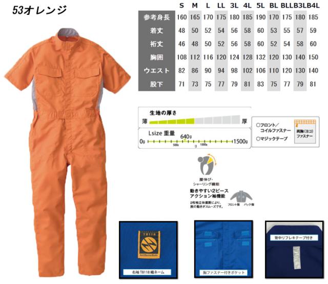 つなぎ作業服 ROUND ONI 帯電防止ツナギ 半袖つなぎ AE-391 丸鬼商店