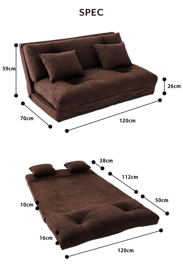 ソファ 3WAYソファーベッド 幅120cm ソファベッド 3way 座椅子 カウチ リクライニング スウェード クッション(代引不可)【送料無料】