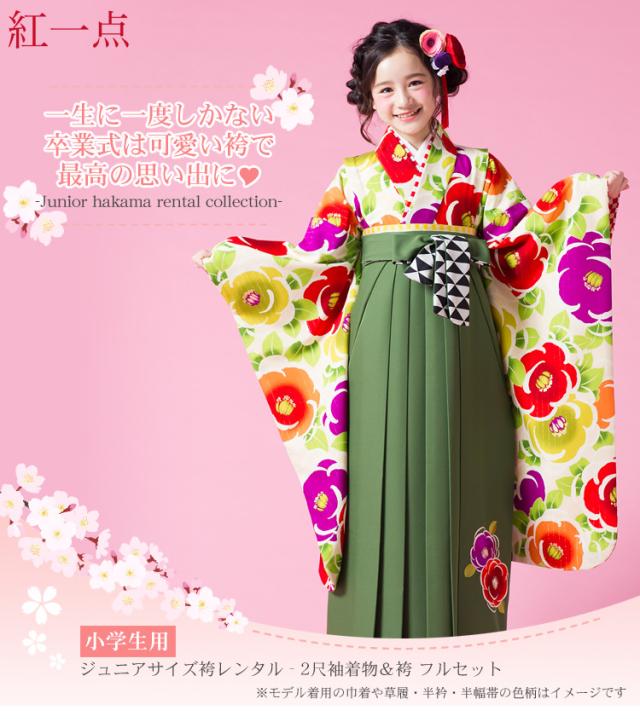 【7泊8日レンタル】レンタル 紅一点 卒業式 袴 小学生 女の子 小学校「ジュニア卒業式袴レンタルセット クリーム地にレトロ椿」 レトロ