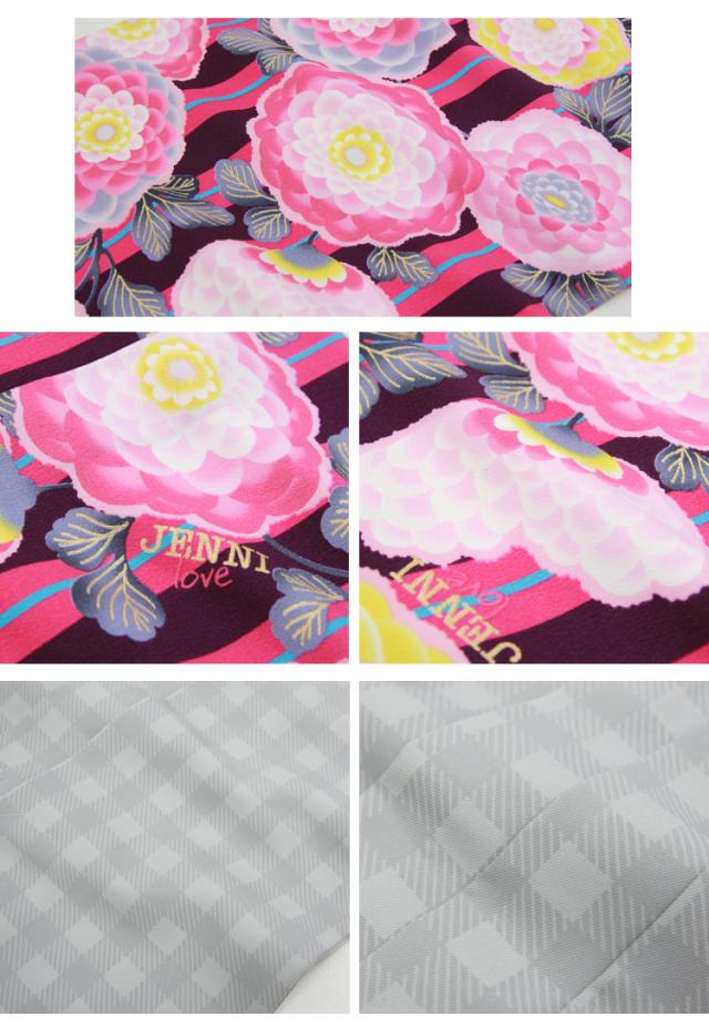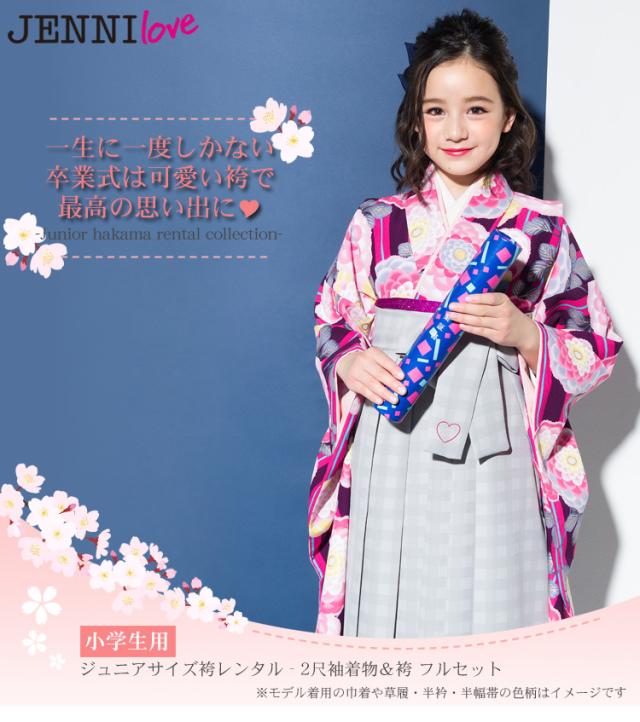 【7泊8日レンタル】レンタル JENNI love 卒業式 袴 小学生 女の子 小学校「ジュニア卒業式袴レンタルセット ピンク・紫の縞地にピンク丸菊」 レトロ
