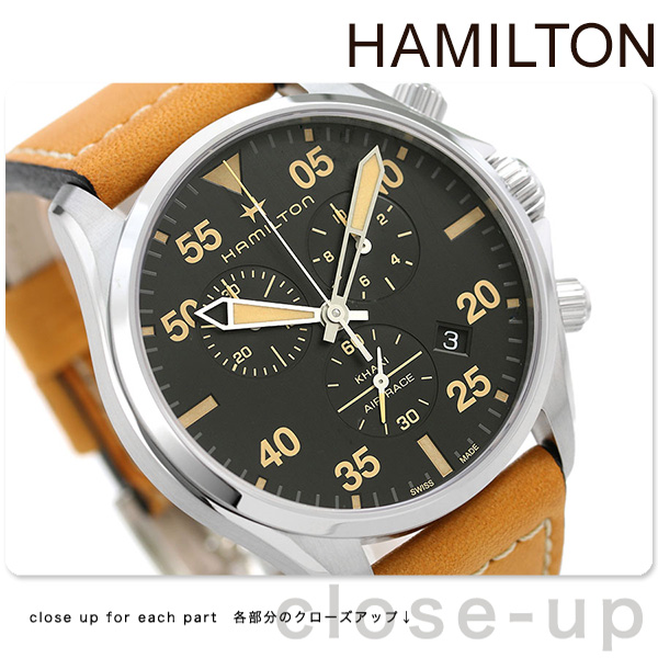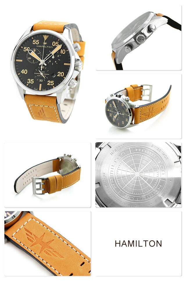 H76722531 ハミルトン アビエーション パイロット クロノグラフ 腕時計 ブランド HAMILTON ブラック×ライトブラウン