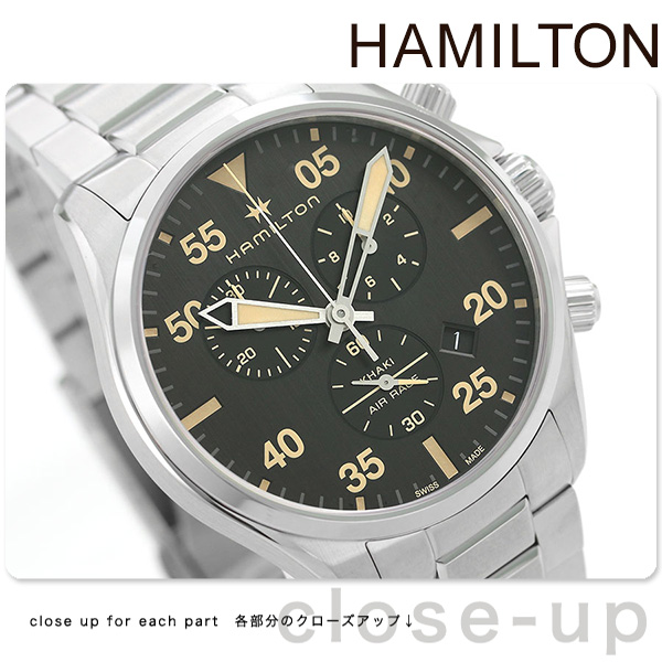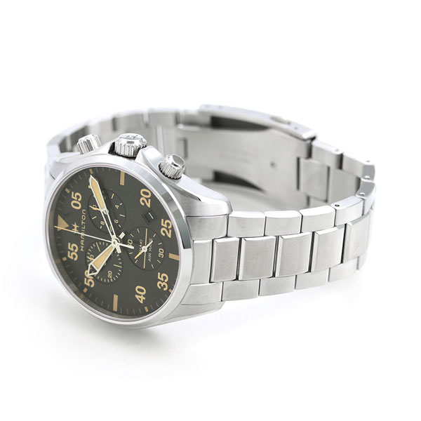 3年保証キャンペーン ハミルトン カーキ アビエーション パイロット クロノ クオーツ 46mm クロノグラフ スイス製 クオーツ メンズ 腕時計 H76722131 HAMILTON KHAKI AVIATION PILOT CHRONO QUARTZ アナログ ブラック ◆HAMILTON(ハミルトン)はアメリカ発祥の老舗ブランドです。創業翌年に誕生した懐中時計「ブロードウェイ・リミテッド」は、他の時計よりも正確に時を刻むことから鉄道用時計として採用されました。その後も航空用時計や軍用時計として採用されるなど、品質の高さと流行にながされない独自のデザインが世界中の人々に支持されています。 アビエーションスタイルとスイス製の高機能がパーフェクトに融合しています。日付表示とクロノグラフ機能を搭載した実用性のあるモデル。シンプルなフォルムデザインはビジネスシーンで大活躍します。