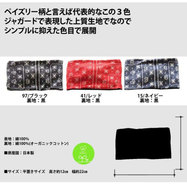 ヘアバンド オーガニックコットン ペイズリー 日本製 メンズ レディース 綿 コットン