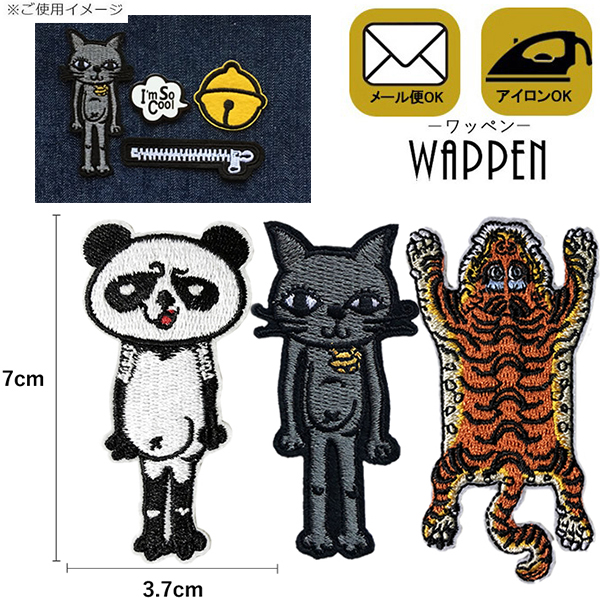 動物 ワッペン 刺繍 アイロン接着 猫 ネコ cat パンダ タイガー 虎 アニマル アップリケ アイロンワッペン 手芸母の日 プレゼント ギフト