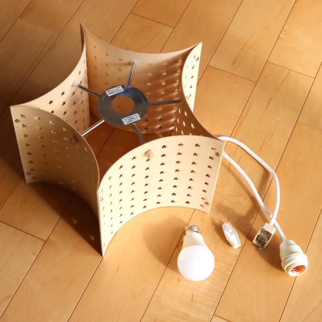 シェード中央の穴にソケットをはめ込み、ネジリングでソケットを固定します。LED電球が付属しているので、到着後すぐにお使いいただけます。