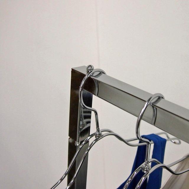 強度のあるスチール角パイプをフレームに使用しています。こぼれ止め付きなのでハンガーが落ちにくい仕様となっています。