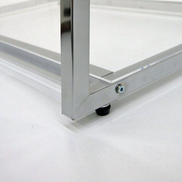 ●エッジの効いたフレームの脚元にはバッグや靴をディスプレイできるアクリル棚付きです。