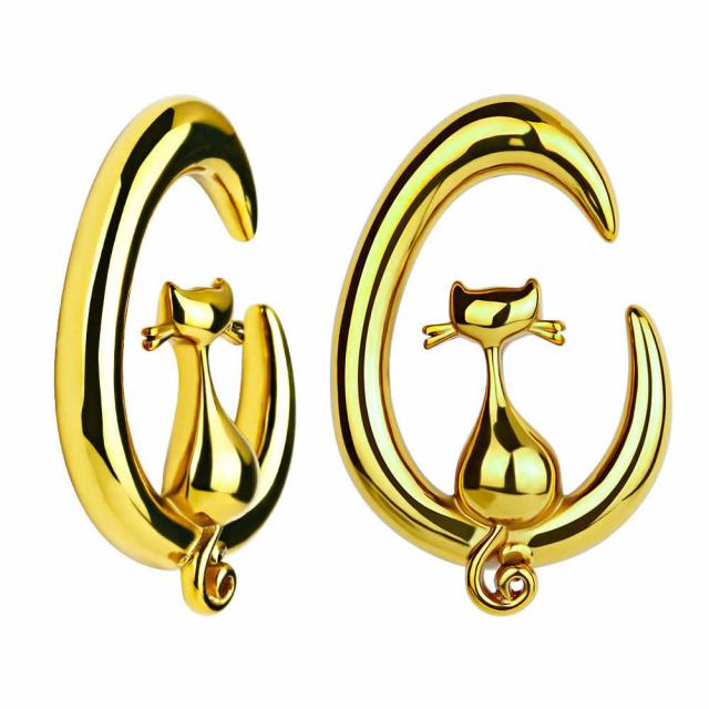 [ボディピアス アニマル 0ゲージ] ゴールドムーンキャット フック型 ボディーピアス 0G 猫 ネコ キャット おもしろ 面白い メンズ レディース 大きい 拡張 ステンレス製 重い 伸びる プレゼント クリスマス ギフト ホワイトデー バレンタインデー ハロウィーン フック型 金色