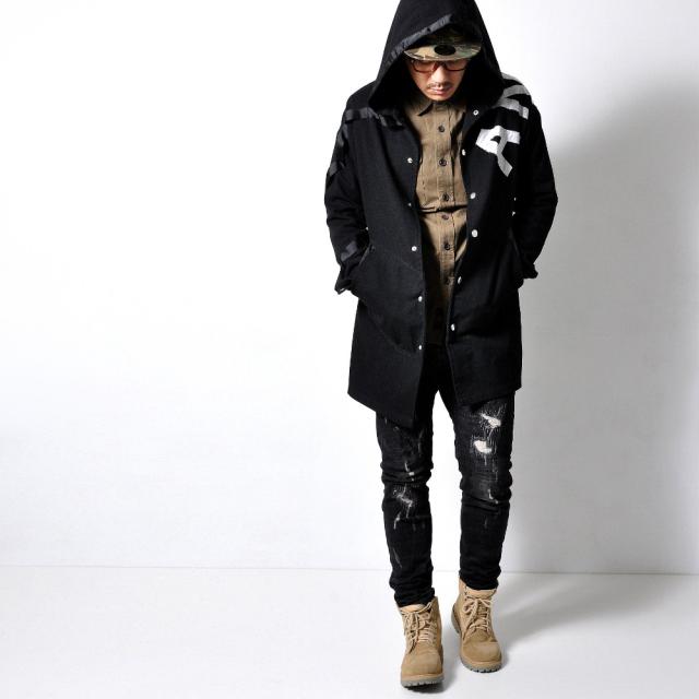 期間限定 SALE 数量限定 ロゴアップリケ フード付きフィールドコート メンズ アウター ジャケット #T748 M便 BL