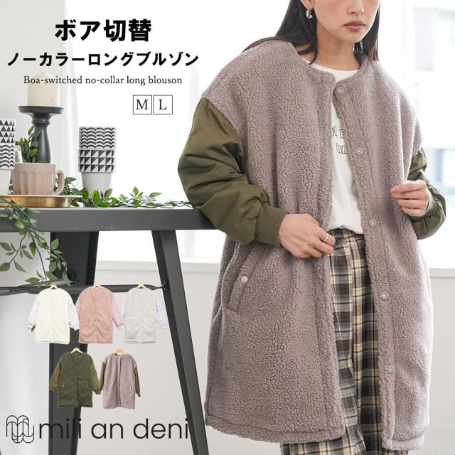 商品名:ボア切替ノーカラーブルゾン