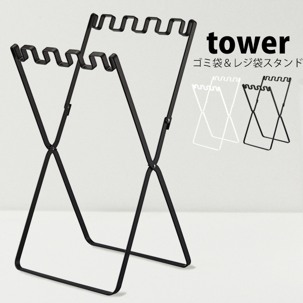 タワー tower ゴミ袋 スタンド 分別 ゴミ袋&レジ袋スタンド 折り畳み おしゃれ ダストボックス ゴミ袋ラック ゴミ袋ホルダー 山崎実業