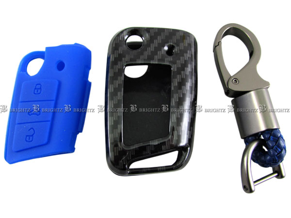 BRIGHTZ ポロGTI 6RD カーボン調スマートキーケース 青 KEY−CASE−008