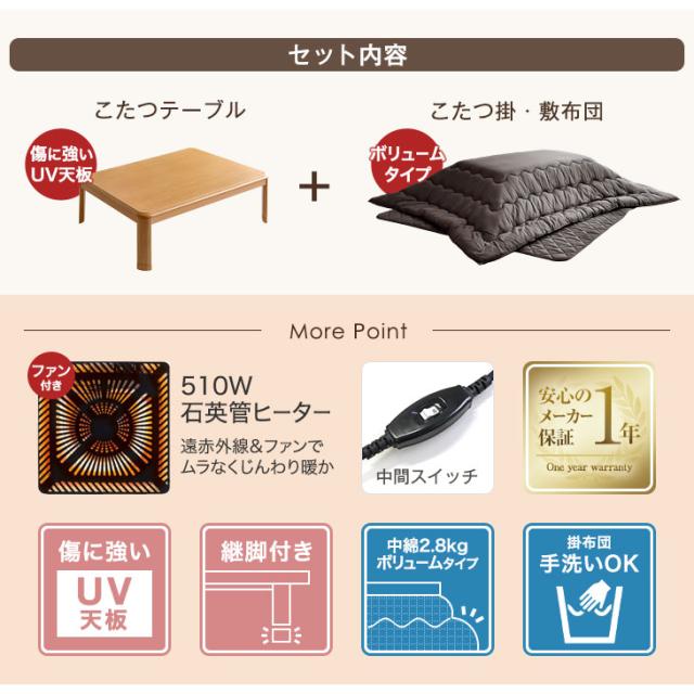 【在庫一掃プライス】 こたつ 長方形 傷に強いUV塗装 こたつ150 + 掛・敷布団 3点セット 継ぎ脚 家具調 こたつ布団 コタツ テーブル コタツ布団 こたつ こたつテーブル 幅150cm 炬燵 火燵 [大型商品]