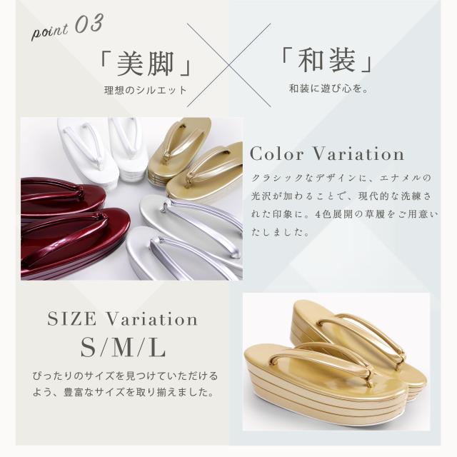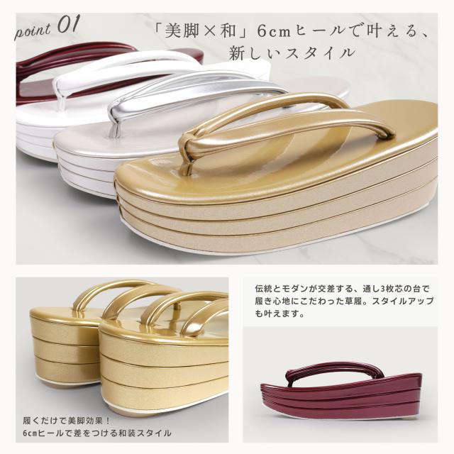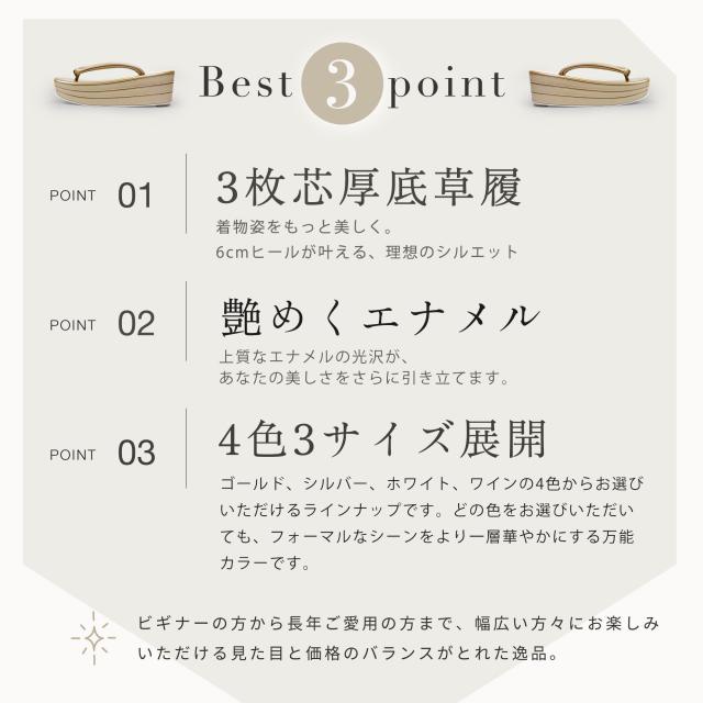 3枚芯 厚底 草履 レディース ヒール草履 エナメル フォーマル 草履 6cmの高いヒール 選べる 4色 3サイズ S M L 日本製 金 銀 白 ワイン 単品 金 銀 ゴールド シルバー 結婚式 入学式 卒業式 お宮参り 成人式 振袖