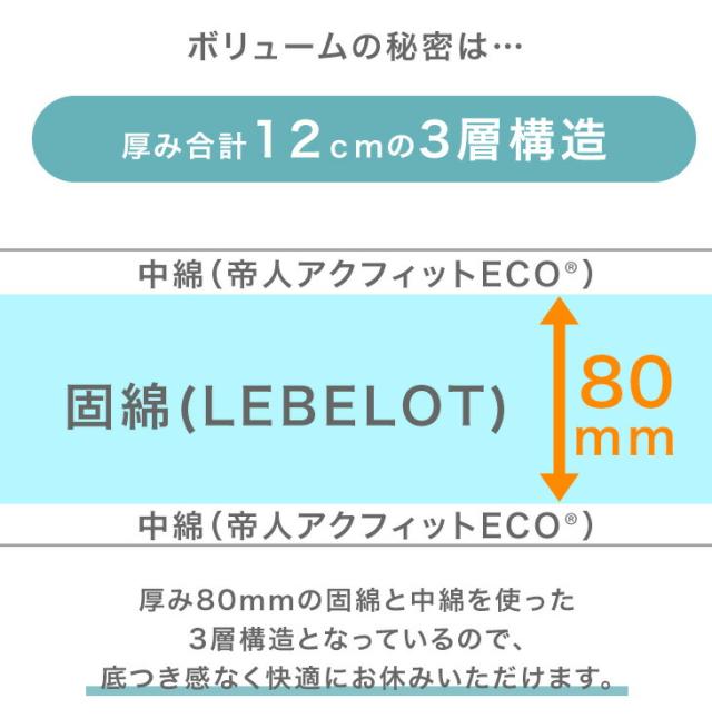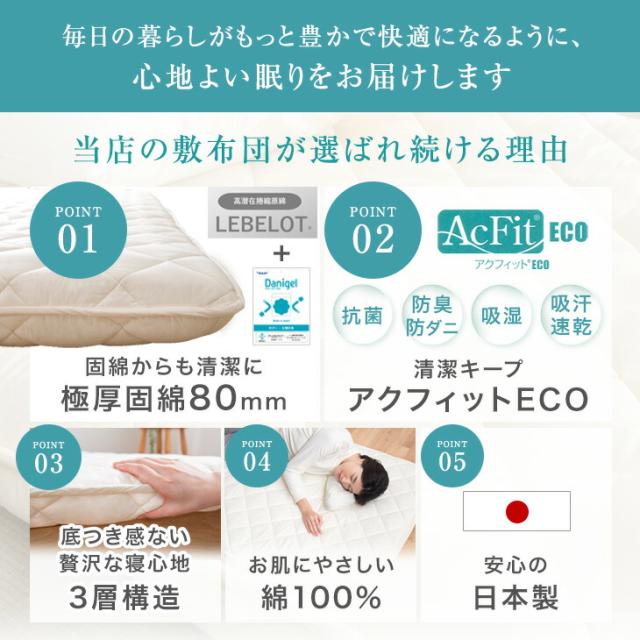 布団の芯から清潔に 極厚固綿80mm 敷布団 日本製 防ダニ 抗菌 防臭 吸汗 速乾 シングル 敷き布団 固綿入り 東レ ルベロット ダニゲル 清潔 マットレス不要 三層敷布団 軽量 国産 マットレス 硬め 極厚 布団 寝具【商品番号:10119320】