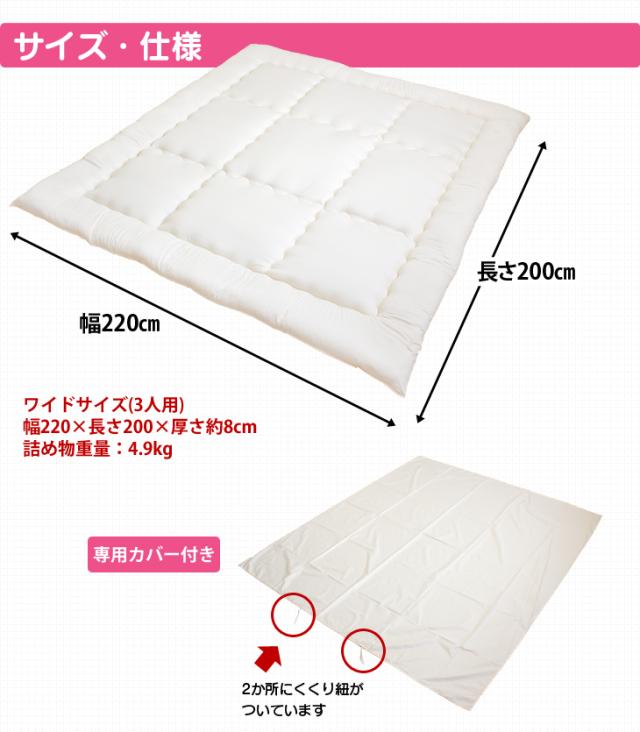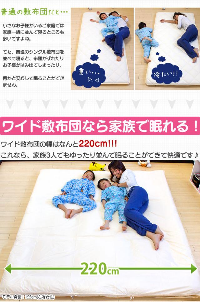【正午〜P5%還元】 敷き布団 日本製 ワイドサイズ 敷布団 220×200 ファミリータイプ ワイド 敷き布団 布団 カバー付き 敷布団 敷き布団