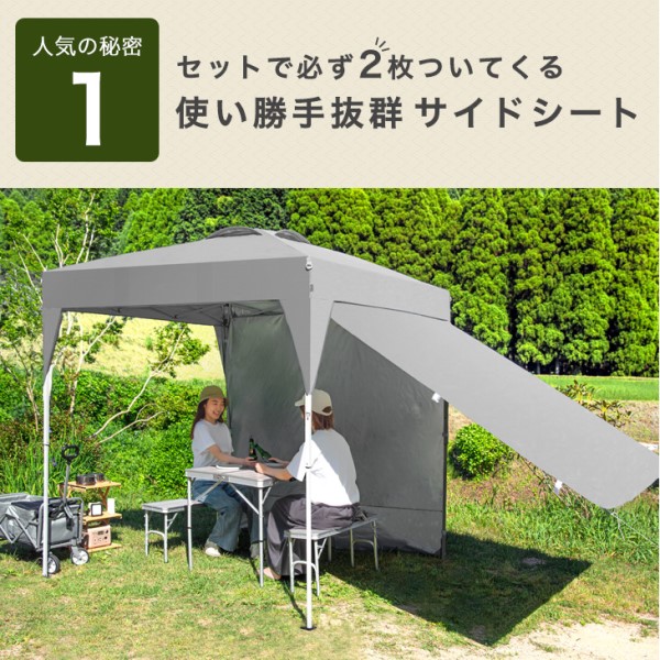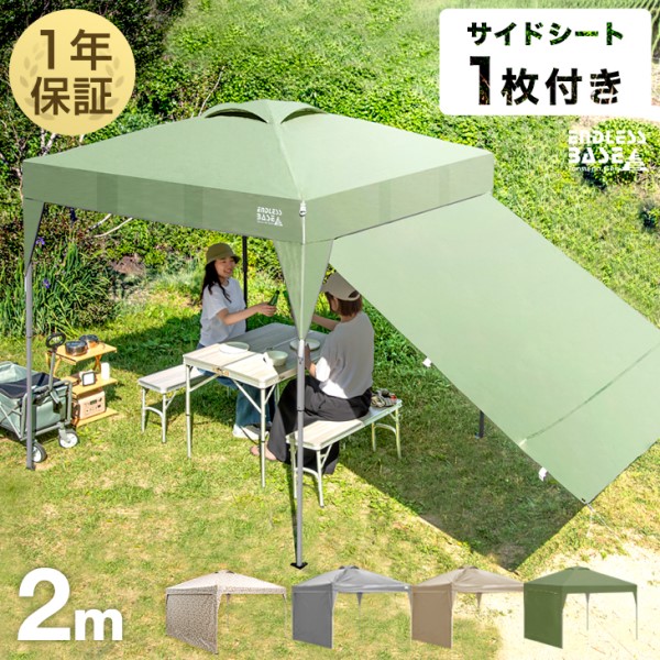 ワンタッチ タープテント 2m サイドシート 2枚付 ベンチレーション UV カット 耐水 ワンタッチタープ タープ テント 簡単 収納ケース BBQ キャンプ アウトドア おしゃれ endlessbase