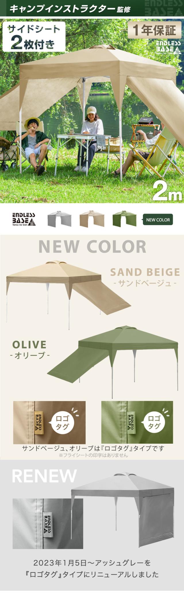 テント タープテント 2m サイドシート 2枚付き ワンタッチ ベンチレーション UV カット 耐水 ワンタッチタープテント 簡単 収納ケース BBQ キャンプ アウトドア おしゃれ endlessbase 1人用 2人用 3人用