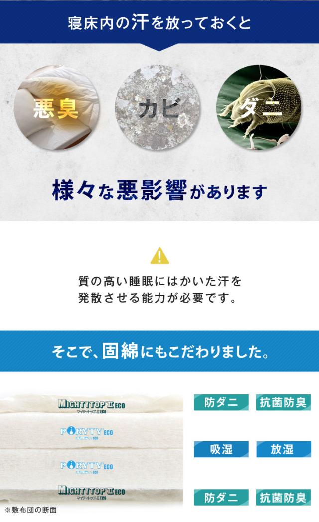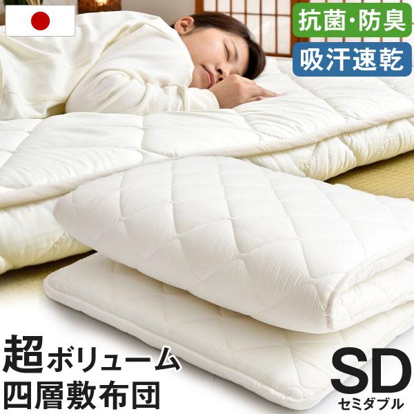 【正午〜P5%還元】 日本製 防ダニ 抗菌防臭 吸汗速乾 極厚4層 敷布団 敷き布団 セミダブル 120×200cm 帝人マイティトップ 国産