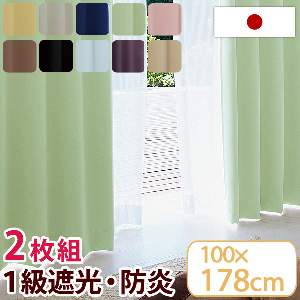 【正午〜P5%還元】 カーテン 100×178 日本製 1級遮光 防炎 2枚セット 防炎カーテン 遮光カーテン 1級遮光カーテン 2枚組 タッセル フック