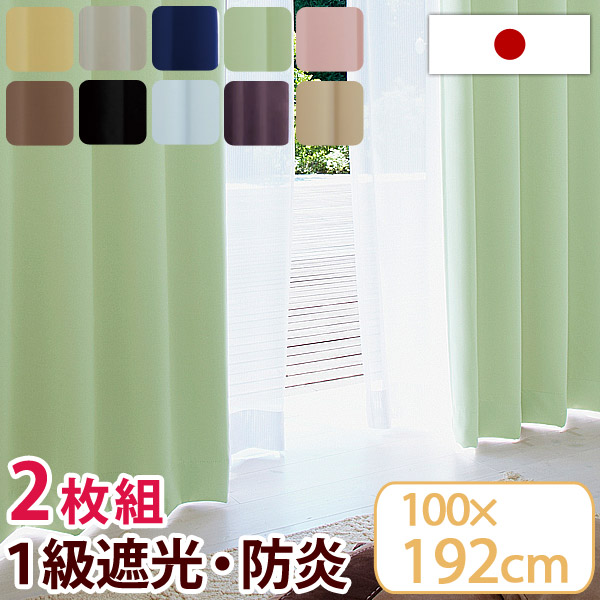 【正午〜P5%還元】 カーテン 100×192 日本製 1級遮光 防炎 2枚セット 防炎カーテン 遮光カーテン 1級遮光カーテン 2枚組 タッセル フック