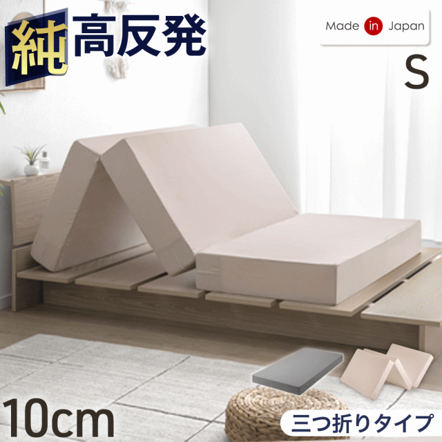 【正午〜P5%還元】 国産 純高反発 マットレス シングル 10cm 三つ折り 高品質 硬め 150N 日本製 高反発 ウレタンマット ウレタン ベッドマットレス ベッドマット マット 折りたたみ 折り畳み 固め 厚め 厚手 ホワイト グレージュ グレー