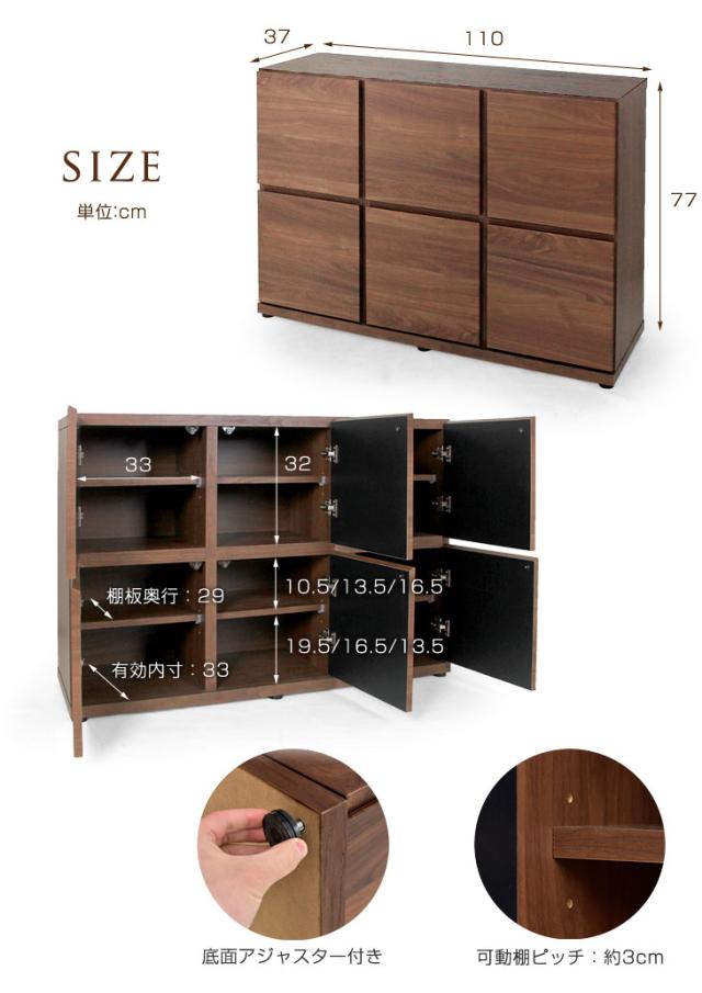 国産 完成品 キャビネット 木製 幅110cm 3列2段 6ドア 本棚 大川家具 収納 キッチン 可動棚 北欧 ラック シンプル ローキャビネット 扉付き棚 収納棚 チェスト 扉付き 日本製 送料無料【超大型商品】【商品番号:24900011WN】