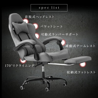 【正午〜P5%還元】 ゲーミングチェア 170° リクライニング オフィスチェア フットレスト搭載 バケットシート フットレスト ハイバック 椅子 オフィスチェアー ワークチェア パソコンチェア チェア