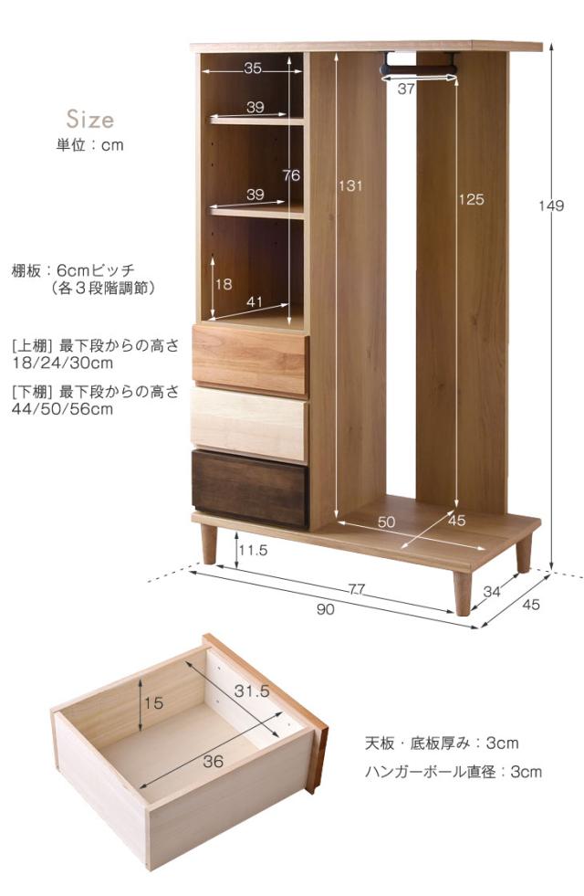 【正午〜P5%還元】 ハンガーラック 国産 完成品 ワードローブ チェスト ハンガー タンス 幅90 クローゼット コートハンガー 収納 [超大型商品]