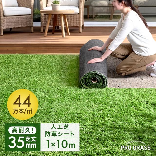 人工芝 芝丈35mm 高耐久 1m×10m [人工芝単品] 高密度 44万本/m2 ロール 人工芝ロール U字ピン 1m 芝 リアル人工芝 人工芝生 マット 防草シート 庭 人口芝