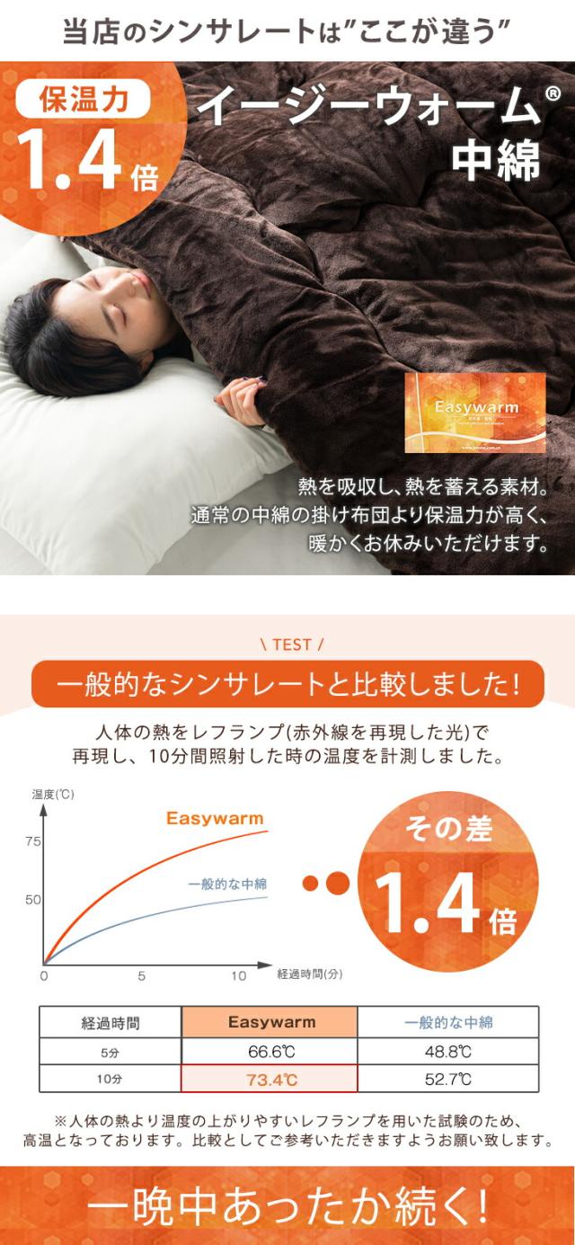 蓄熱イージーウォーム シンサレート 掛け布団 シングル ロング 洗える 掛布団 シンサレート全面使用 抗菌 防臭 掛け布団 軽い 冬用掛け布団 収納ケース付 フランネル ピーチスキン 【商品番号:61140240】