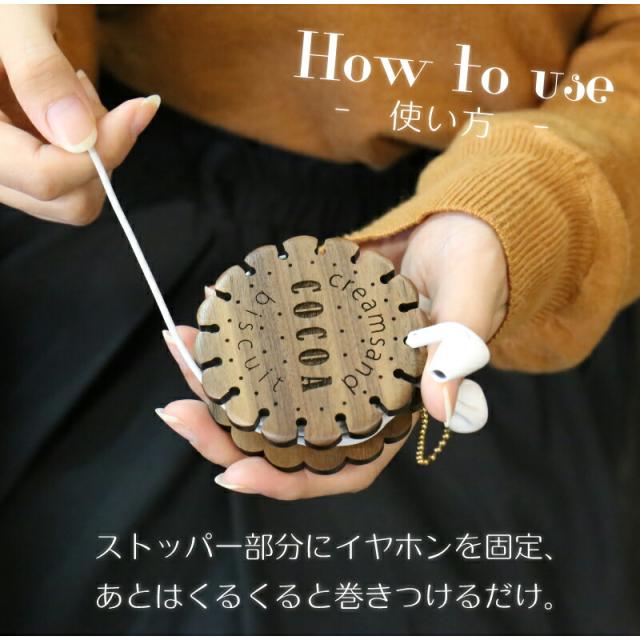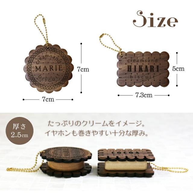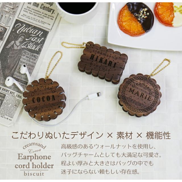 イヤホン コード ホルダー プレゼント 誕生日 ビスケットサンド型木製イヤホンコードホルダー 翌々営業日出荷 巻き取り 記念日 人気 名入れ ギフト