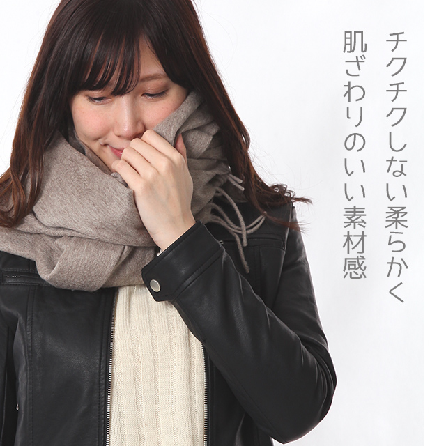 使い勝手抜群の無地は、メンズ、レディースにも通勤、通学等普段使用に便利。ウールと混紡することでコストパフォーマンス抜群のストールになりました。首に巻くだけでもボリュームがある大判タイプでひざ掛けにも。いろんな巻き方が楽しめます。