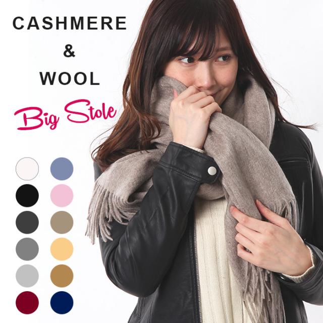 \25%OFF/カシミア ストール 大判 無地 ウール 200cmX70cm カシミヤ 大判ストール 大判 厚手 ひざ掛け 秋冬 カシミア30% ウール70%