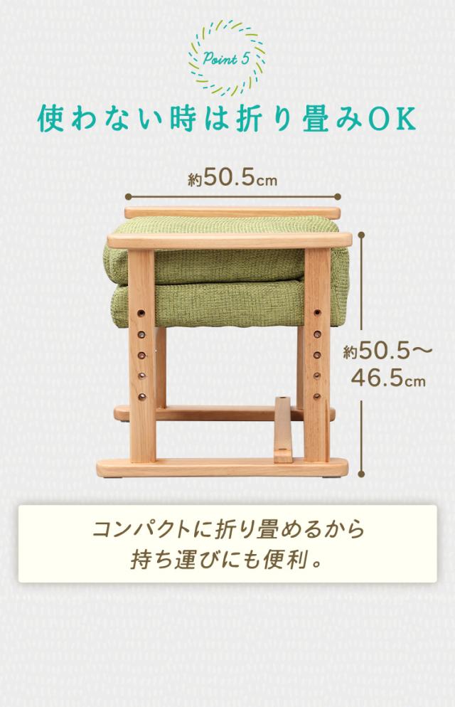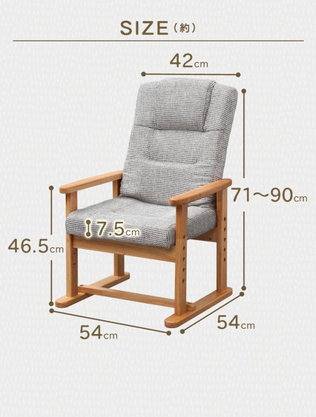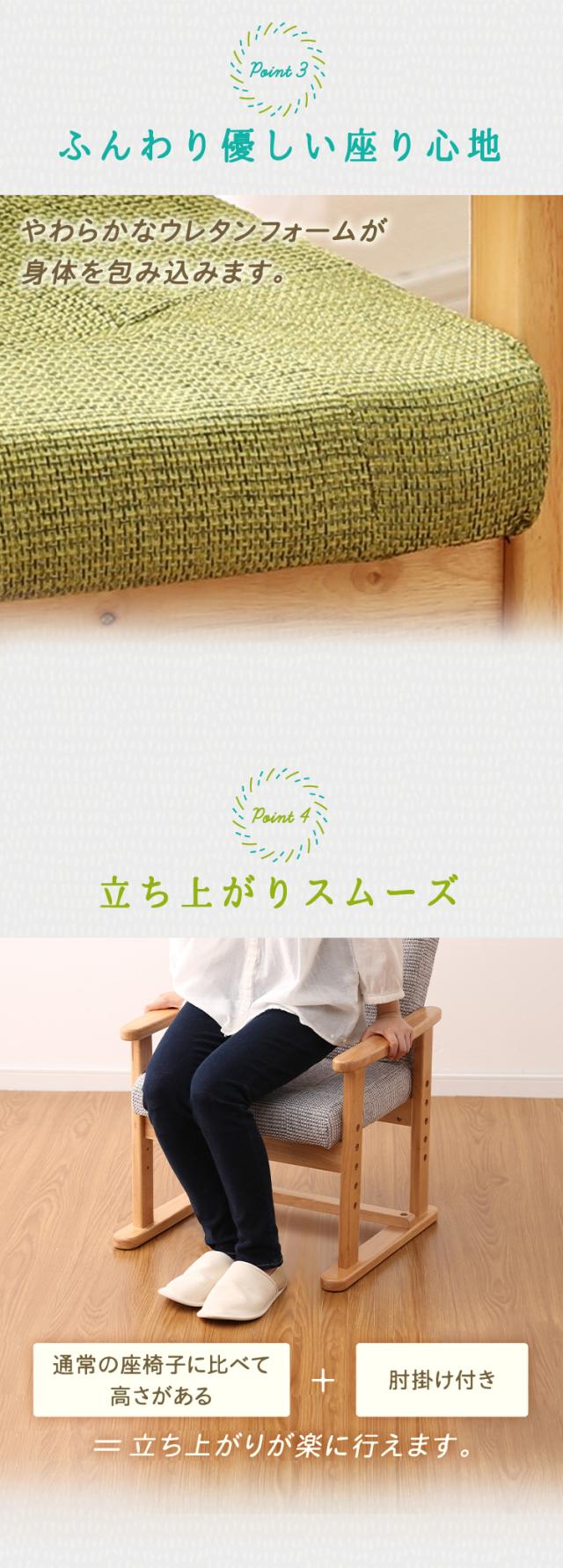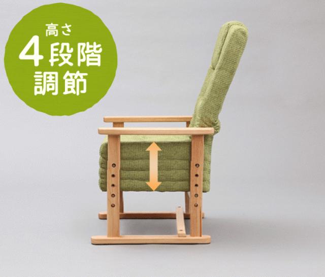 通常の座椅子に比べて高さがあり、さらに肘掛け付きだから、立ち上がりが楽に行えます。