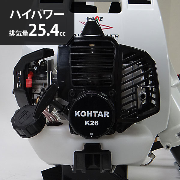 ン型式名 K26 形式 空冷単気筒2サイクルエンジン 総排気量 25.4cm3 出力 0.86kW 気化器 ダイヤフラム式 点火方法 CDI 始動方法 リコイルスタータ 燃料タンク容量 600cm3 使用燃料 ガソリン:2サイクル専用オイル 50 : 1