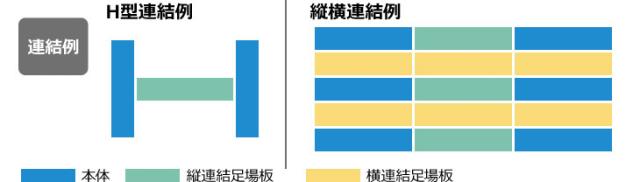 本体:DWJ-150 連結足場板:DWJ-STA150(縦連結用)、DWJ-STB150(横連結用)