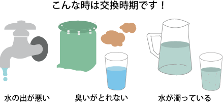 ※交換周期はあくまで目安です。井戸水の水質や使用水量、季節や配管の汚れ具合によって寿命が短くなる場合もあります。