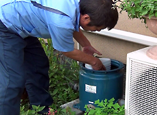 | カートリッジは2個(1台分)が入っています。 | 輸送用テープをはがしています。 | 浄水器のタンクカバーを外し、カートリッジを差し込んでいます。 |