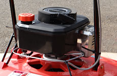 共立 フライングモアー FM47Aは移動用車輪が有りません。機械本体の大型ファンにより強力なエアーが吹き出し、地面より浮き上がりますので、前後・左右と楽に作業ができます。