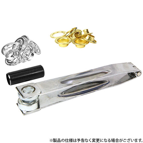 ●付属品:15mm両面ハトメ(真鍮製5組・アルミ製5組)・16mm下穴ポンチ。