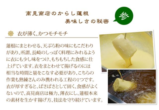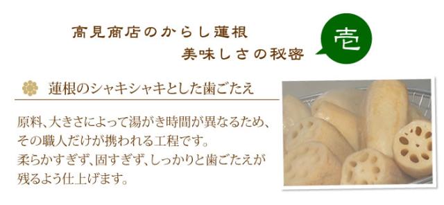 創業以来本物のからし蓮根を追求しつづける高見商店よりお届けします