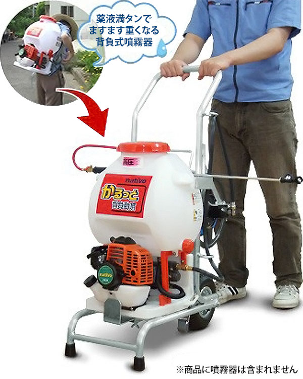 お手持ちの背負い式噴霧器を移動が楽なキャリータイプにチェンジ!