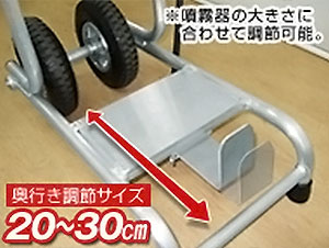 セットする噴霧器の奥行に合わせて調節できます。固定はネジ留めです。